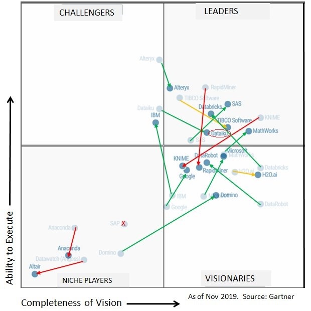 Par cette nomination, Gartner récompense la capacité d’exécution et la vision globale de Dataiku qui est de réunir experts data et métiers sur une même plateforme collaborative. Dataiku intègre donc, pour la quatrième année consécutive, le rapport Gartner et rejoint pour la première fois le rang des leaders sélectionnés dans le Magic Quadrant.