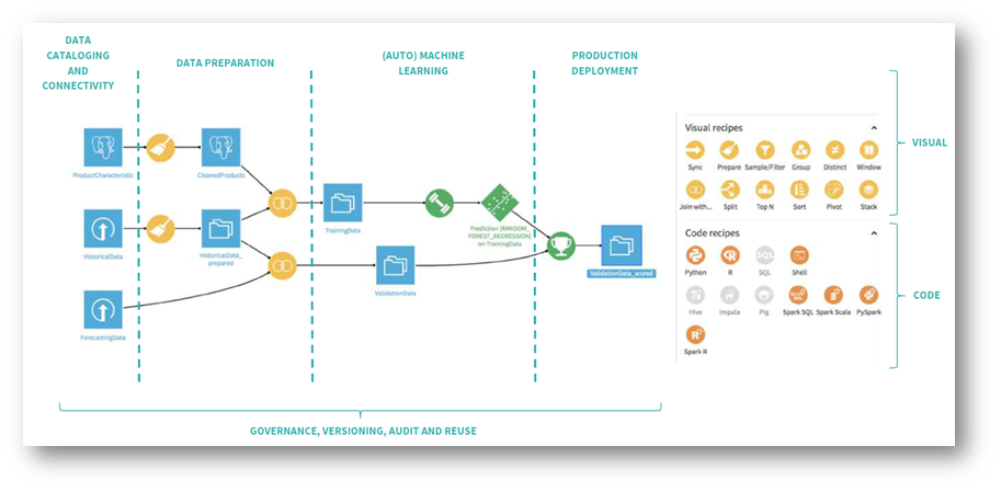 Pour les Data Ops, l’avantage de Dataiku DSS réside dans la possibilité de coordonner le développement et les opérations grâce à l’automatisation du workflow.