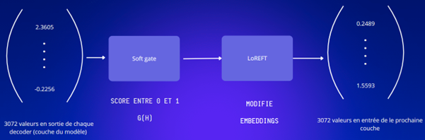 - Le bloc ReFT fait une transformation pour ne pas laisser passer les informations.