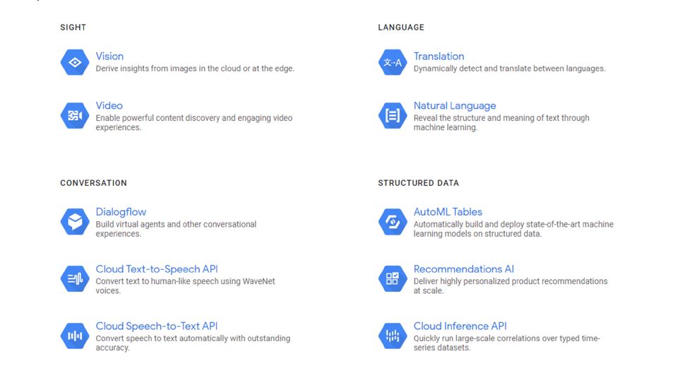AutoML est disponible pour plusieurs disciplines de I’IA :