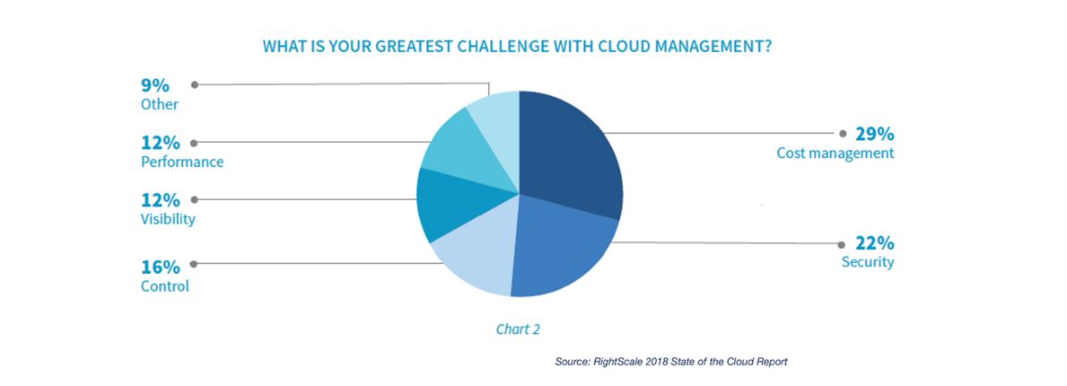Ce graphe explique les plus grands challenges du Cloud. On peut voir que la gestion des coûts est un enjeu majeur concernant le choix de la plateforme Cloud. Par ailleurs, le facteur “Sécurité” est aussi important à prendre en compte car la protection des données est un point non négligeable.