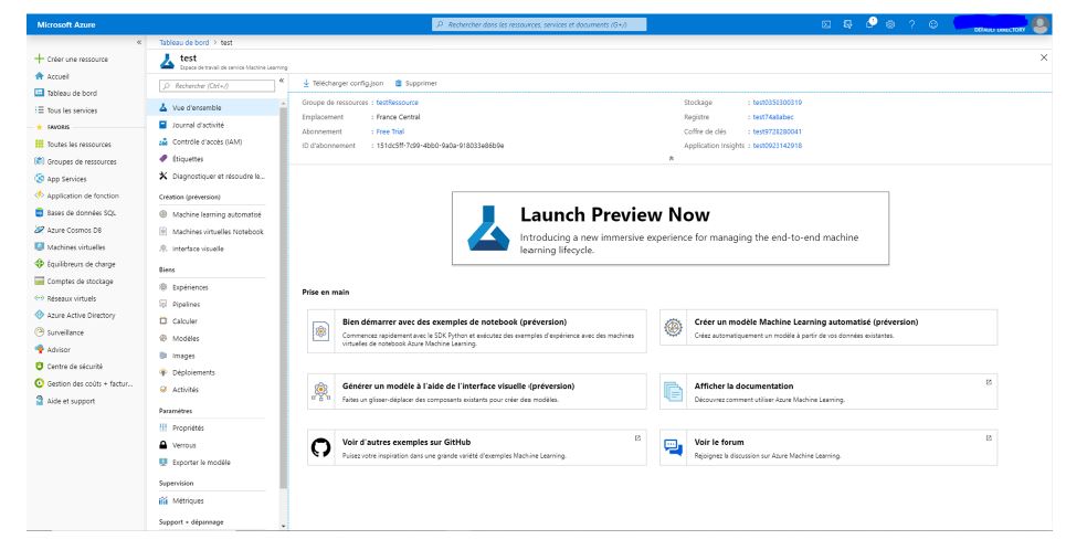 Par ailleurs, on peut y gérer un grand nombre d’options plus poussées : créer des notebooks, des pipelines, des modéles, des déploiements, etc.