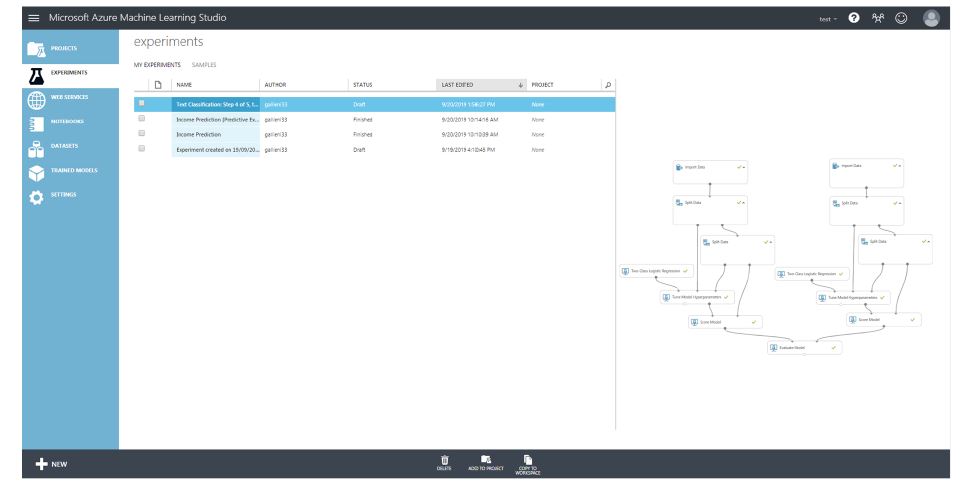 Par ailleurs, Azure propose sa propre galerie « d’expérimentations » mais offre aussi la possibilité aux utilisateurs de proposer les leurs tout comme le permet Kaggle avec les différents projets.